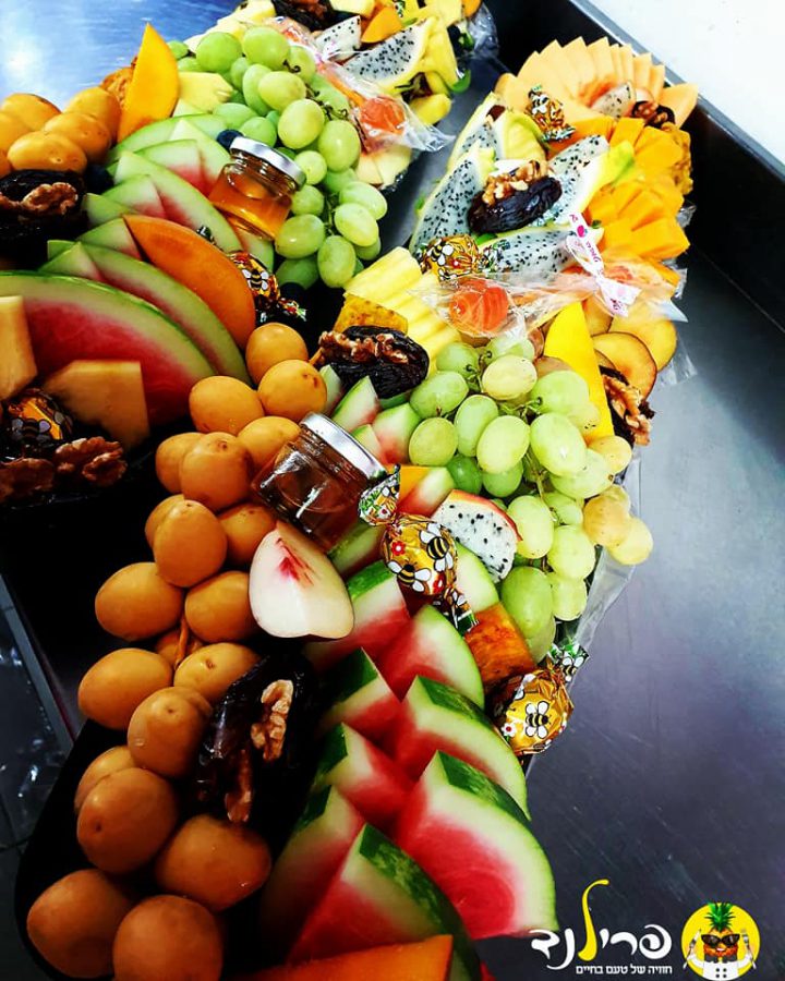 הסירה מכילה: אבטיח, מלון, ענבים, קווי, מנגו, שזיף, סברס, פיטיה, קובו, אגוזים ותמרים, תמר צהוב ושלל פירות העונה.